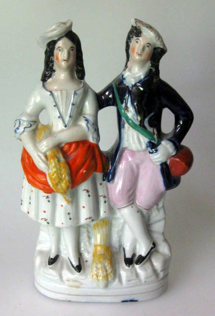 Staffordshire figure of two young people with ears of corn, 19th century. England. Polychrome decoration. H .: 18 cm.