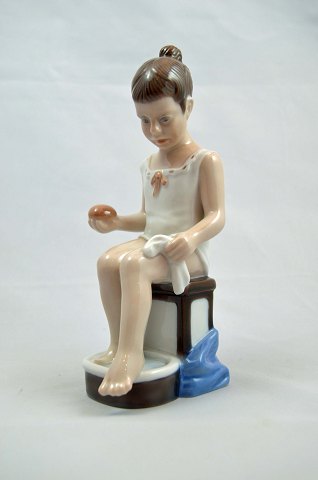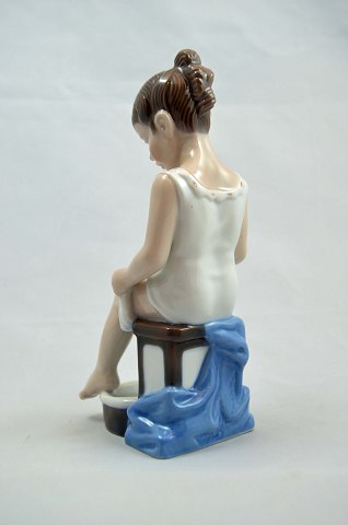 Håndmalet figur (nr. 5) fra Lyngby porcelæn. Pige tager fodbad.