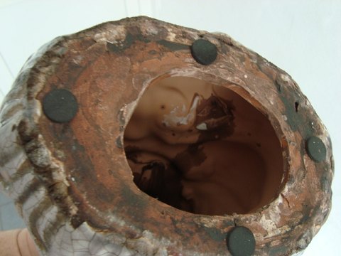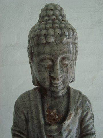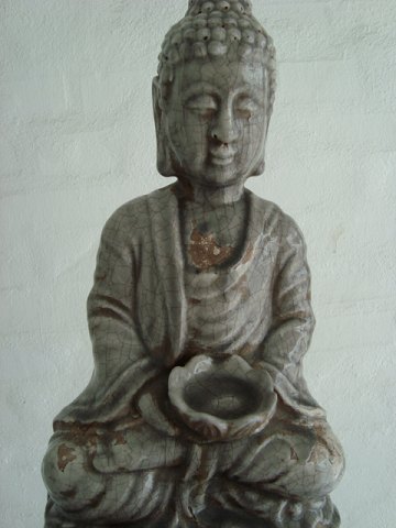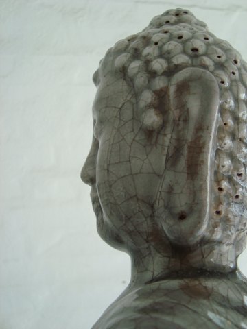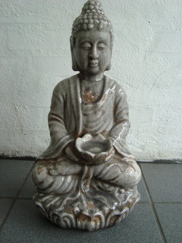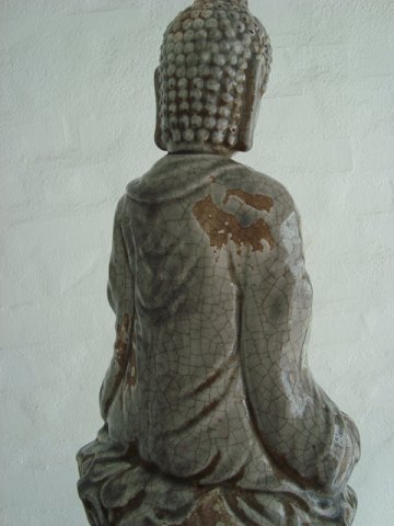 Gammel kinesisk Buddha på lotustrone med cracelé glasur - Ming Stil.