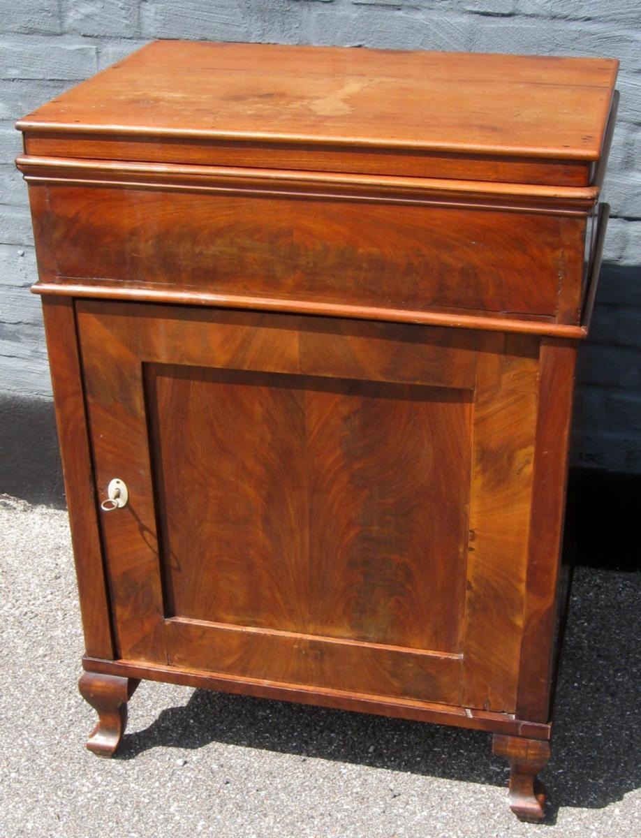 Mahogany washstand, 19th century. Chr. 8. With door and hinged lid. BH .: 90 cm. B .: 63.5 cm. D: 45 cm.