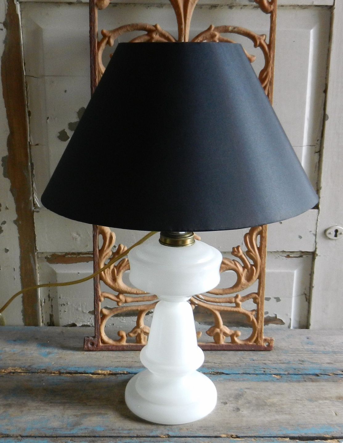 Hvid opaline olielampe omlavet til el.