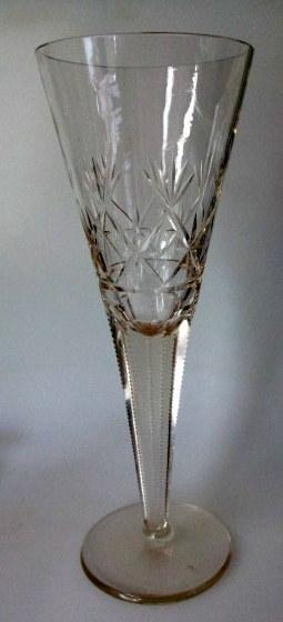 Slebet krystal pokalglas, o. 1900. Rund fod med 6 sidet stilk med slibninger. Kumme med krydsslibninger. H.: 28,5 cm. Flot stand!
