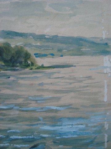 Akvarel af Michael Bang-Sørensen - Svensk parti fra Siljasøen - Ratvig 1952..