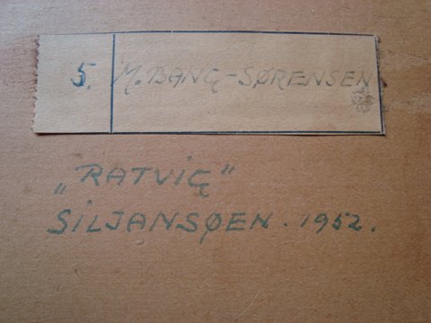 Bagpå udstillingsmærkat - No. M. Bang-Sørensen - Ratvig - Siljasøen 1952.