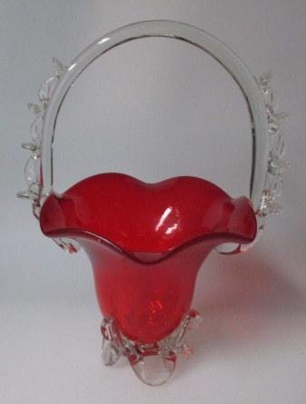 Venetian glass vase in the shape of a basket, 20th century. Clear and red glass. H .: 28 cm.
