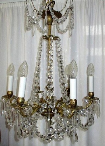 5 armed bronze crown, hung with prisms, 1930
