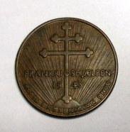 Couples copper coins France Aid 1945. With the text: Paris in Copenhagen 9th Nov. 1945. On the back text: invulnerable was your spirit - your clutter - your tribe, you handle with chained hand your freedom flame. Dia .: 3,1 cm. Price for 2 pcs.