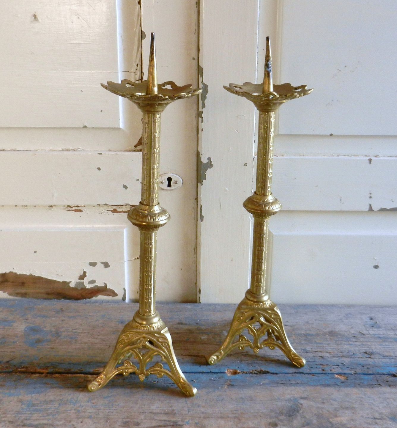 Par franske lue forgyldte alterstager til bloklys.