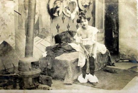 Fransk erotisk postkort 1910 - 1920.8,5 x 13,5 cm. Slidt eksemplar.