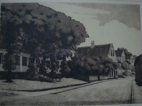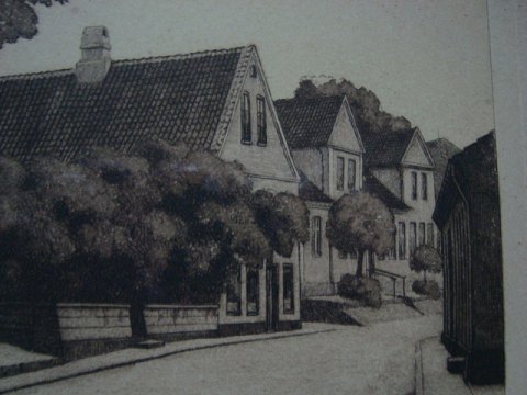 Radering af Peter Holm - Bryggergården i Nørresundby.