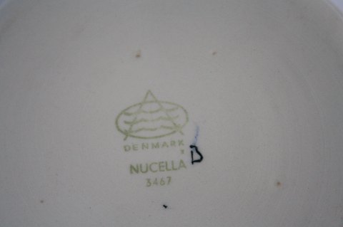 Aluminia kunstfajance, Nucella skål med låg. Dek.nr. 3467. Højde 8,5 cm. Diameter 16,5 cm. Pris: 375 kr.