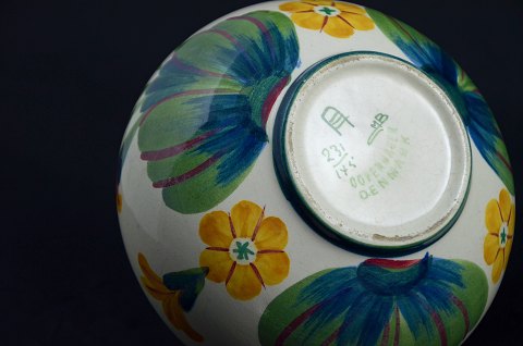 Aluminia vase med gul blomst (dek. nr. 231/145). Vasen er i meget pæn stand.