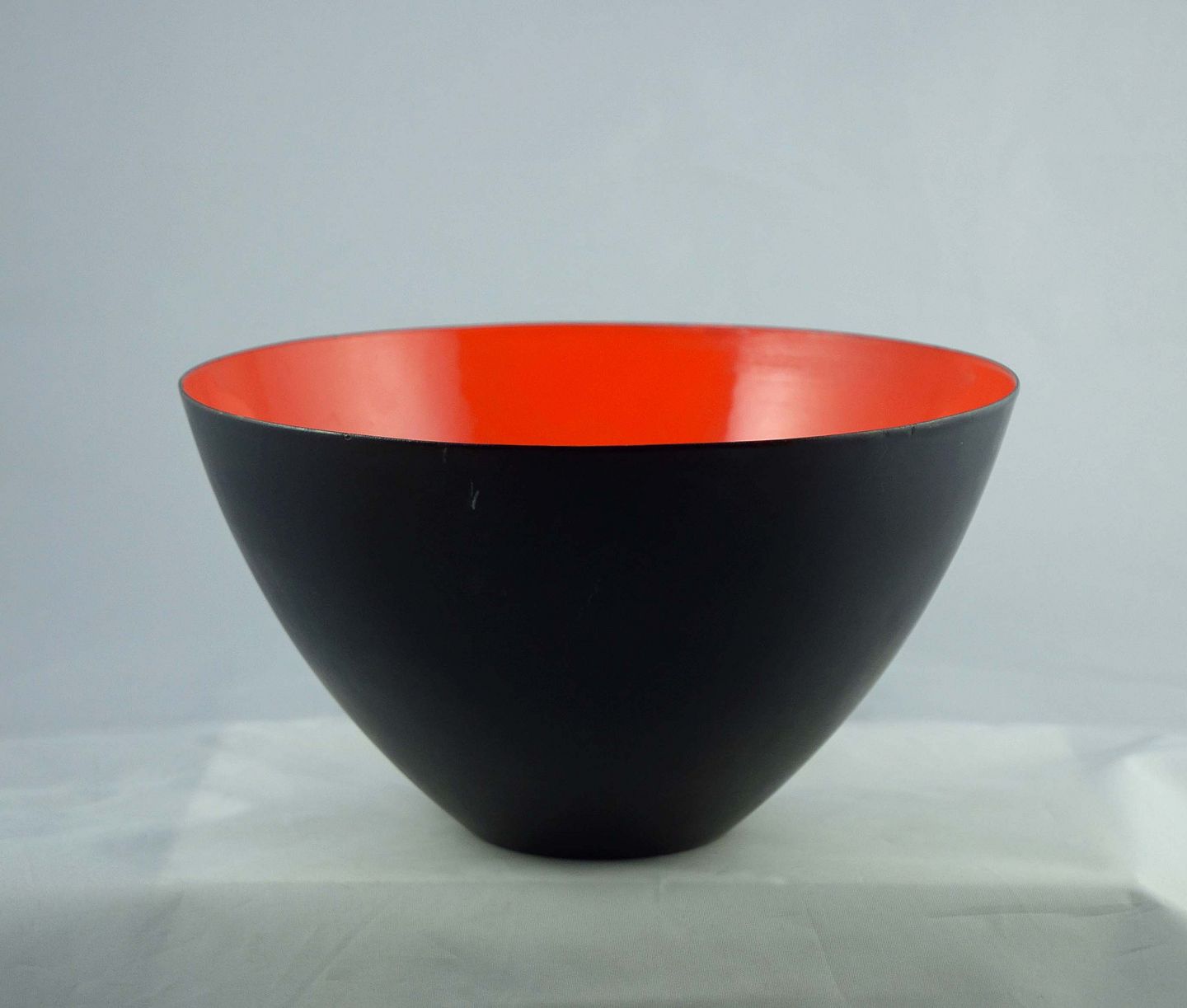 Krenit skål med orange emajle. Skålen er i meget pæn stand.