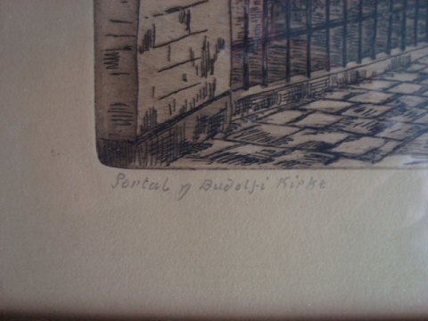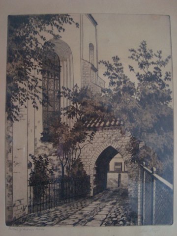 Radering af Søren Frank - Portal ved Budolfi Kirke, Aalborg.