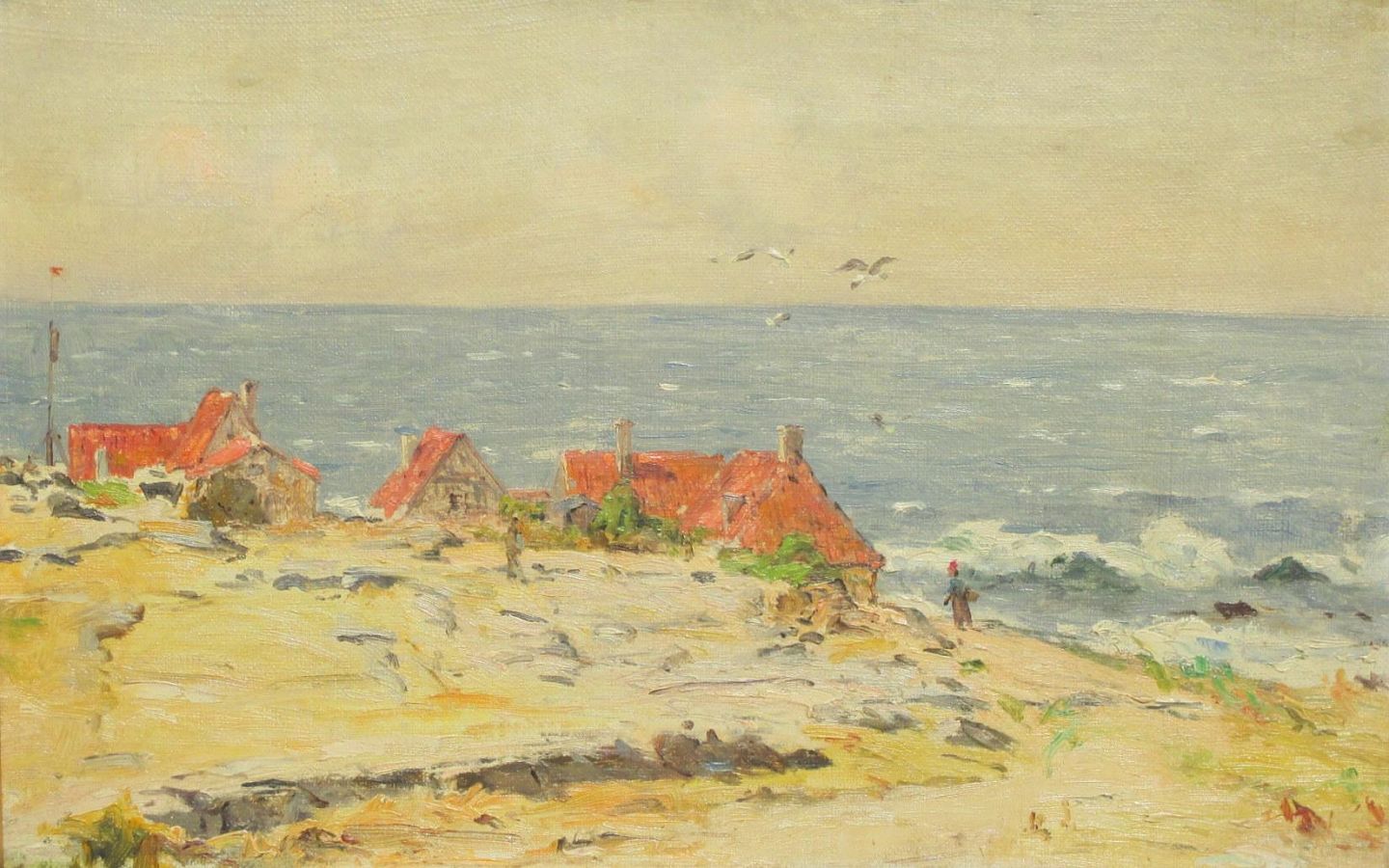 Winther, Frederik (1853 - 1916) Danmark - tilskrevet: Parti fra Christiansø. Olie på lærred. Usigneret. Men betegnet på blændrammen. 23 x 34 cm.