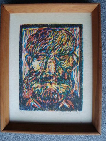 Farvetræsnit af Jørn Grynnerup - Portræt 1977.