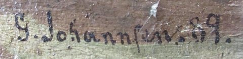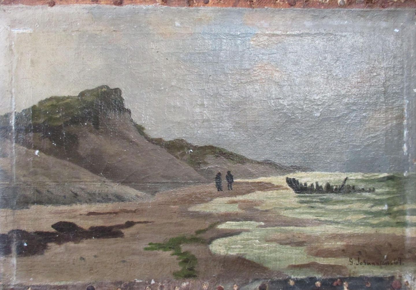 Johannsen. J. (19. årh.) Danmark: Personer ved havet. Olie på lærred. Signeret.: G. Johannsen 89. 15,5 x 22 cm.