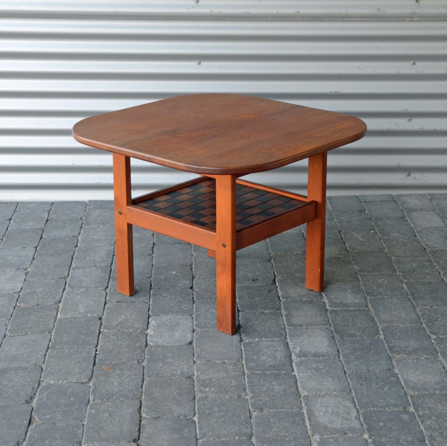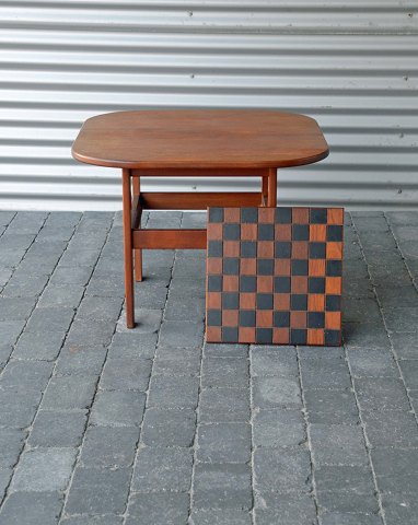 Sofabord i teaktræ med aftagelig skakbræt. Bordet er i meget pæn stand. H: 65 cm. B: 75 cm. L: 75 cm.