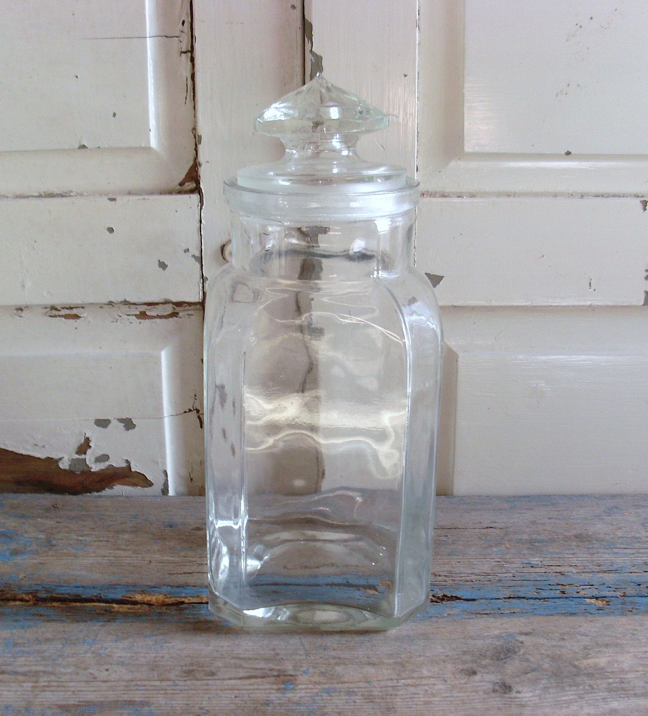 Firkantet bolcher glas med slebet låg
