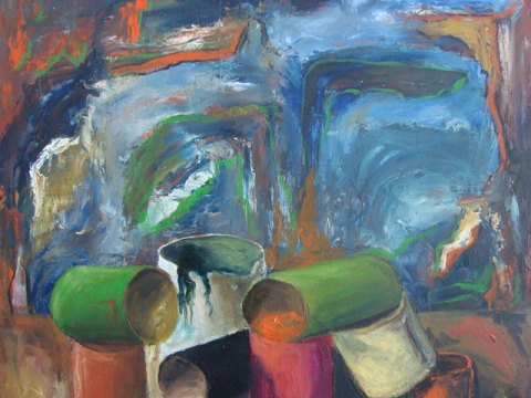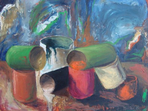 Maleri signeret "Morten" 1980 - Farve Bøtter.