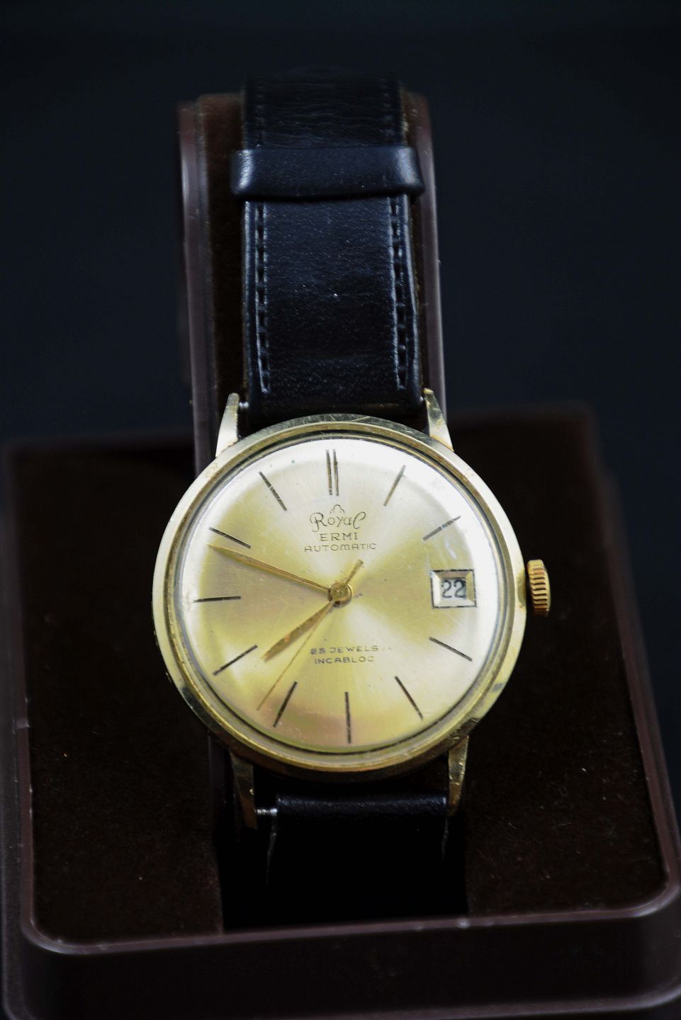 Herreur i 14 karat guld (585) - Royal Ermi Automatic 25 Jewels incabloc. Samlet vægt med rem 32 gram