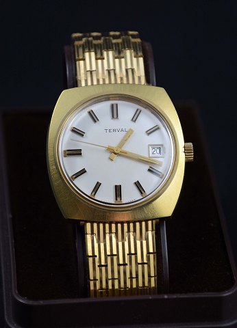 Terval armbåndsur til herrer. Uret er stemplet 873901 og lavet i Schweiz. Uret har enkelte ridser i glasset men er ellers i pæn stand. Ø. 4 cm. L. 19,5 cm.