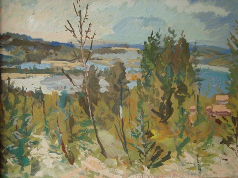 Maleri af Folmer Bonnén - Parti fra Klarelven i Värmland.