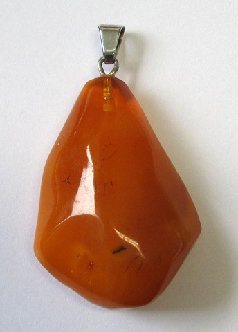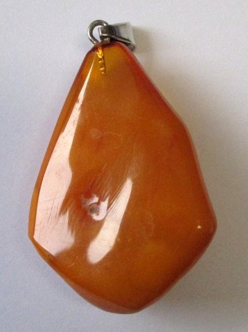 Poleret ravstykke med øsken i sølv, Danmark. Mælkerav. H.: 4,5 cm. B.: 3,3 cm.