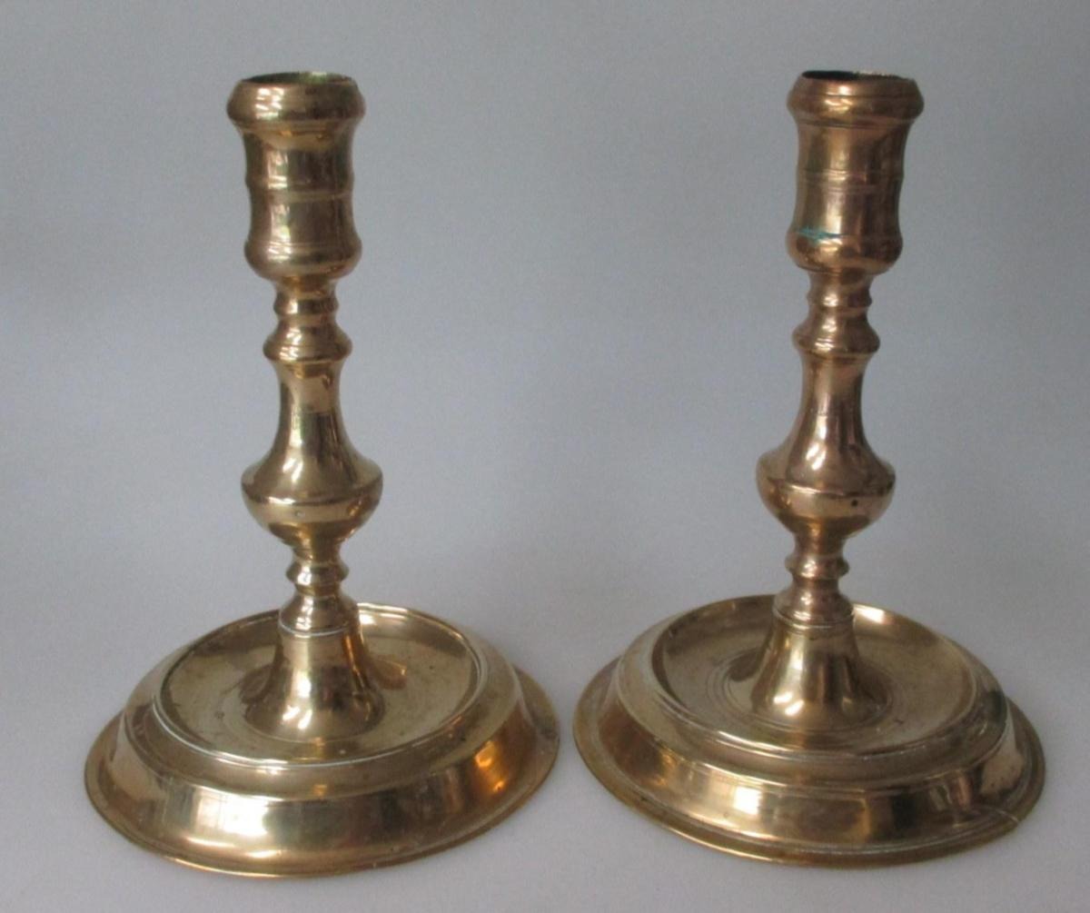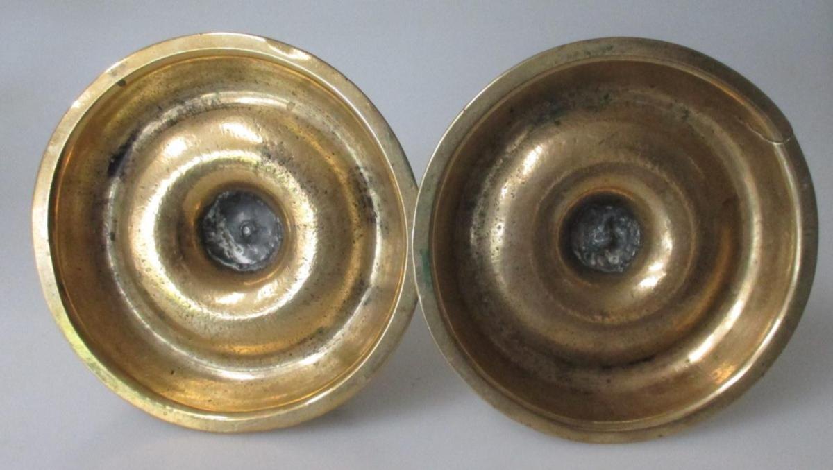 Par Næstved stager, 19. årh. Danmark. Messing. Rund fod og profileret stamme. H.: 16,5 cm. Ingen synlige mestermærker.