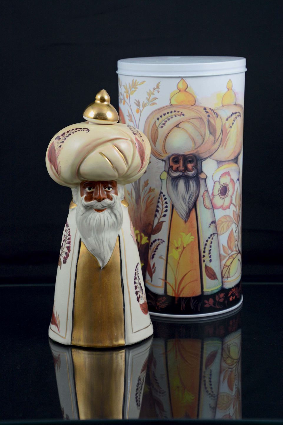 Lysestage figur i keramik med motiv af Melchior med hvid skæg år 1986 fra Hellige trekonger serien