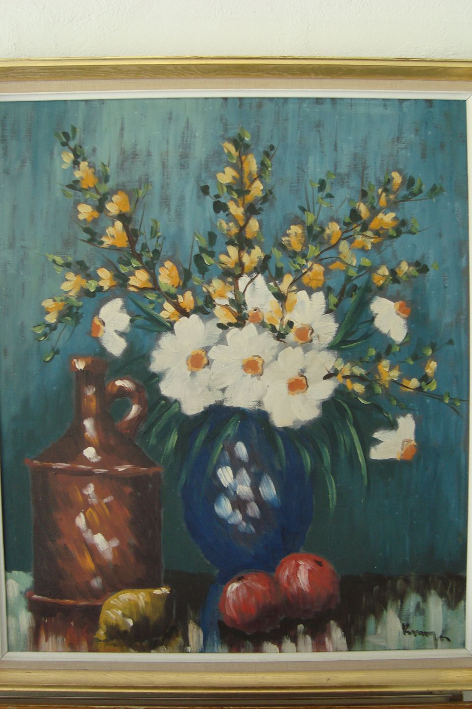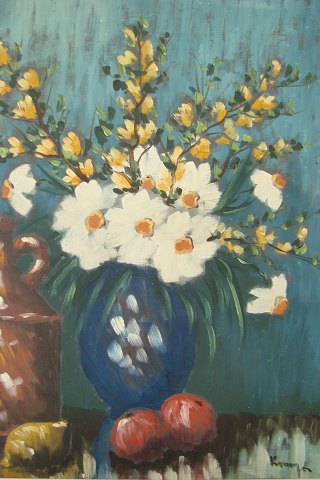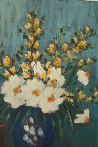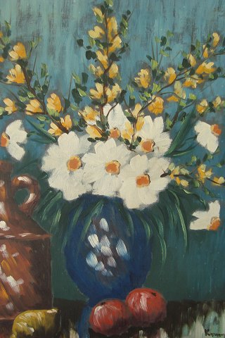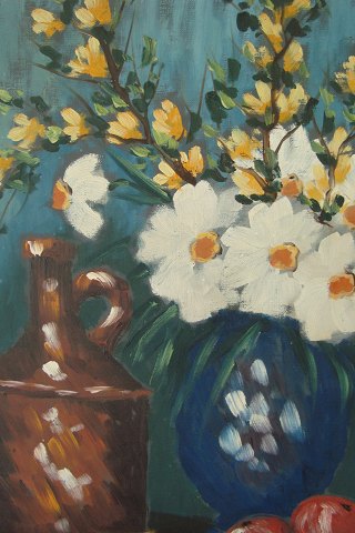Maleri af Christian Karup - Opstilling med forårsblomster i vase.