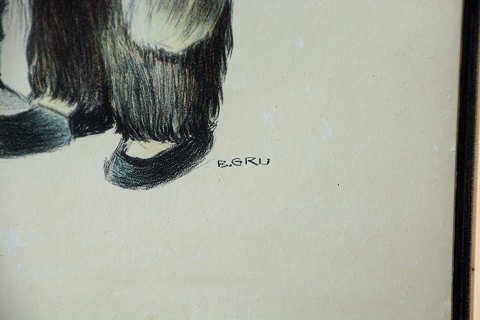 Tryk af B. Gru med motiv af af eskimo med barn.