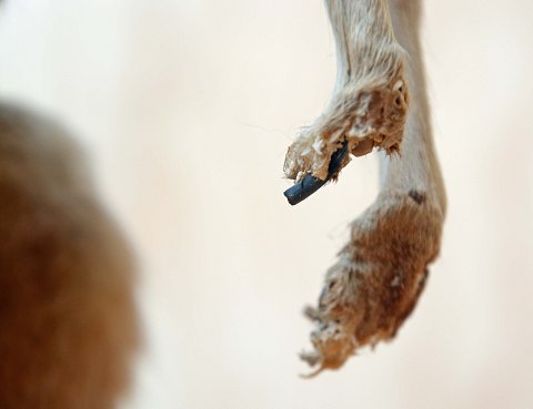 Mindre skade bag det ene øre og ved den ene forpote, ellers pæn stand