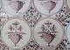 Sofabord i eg, rococostil med skæringer og 16 hollandske antikke fliser, 19./20. årh. H.: 60 cm. Plade.: 65 x 65 cm. Med 16 hollandske antikke "blumenpot" fliser.