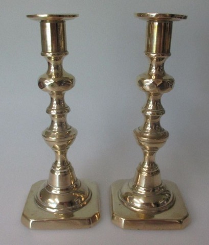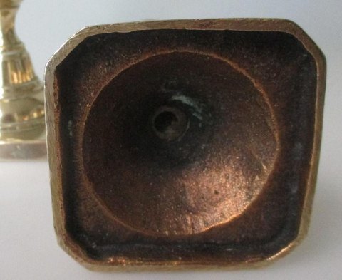 Par engelsk messingstager, 19. årh. 8 kantet fod. Med profileret stamme. H.: 16 cm.