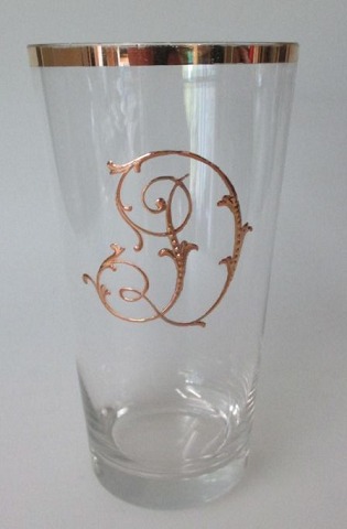 Drikkeglas, klart glas med forgyldt monogram: JD. Tyskland, o. 1890
