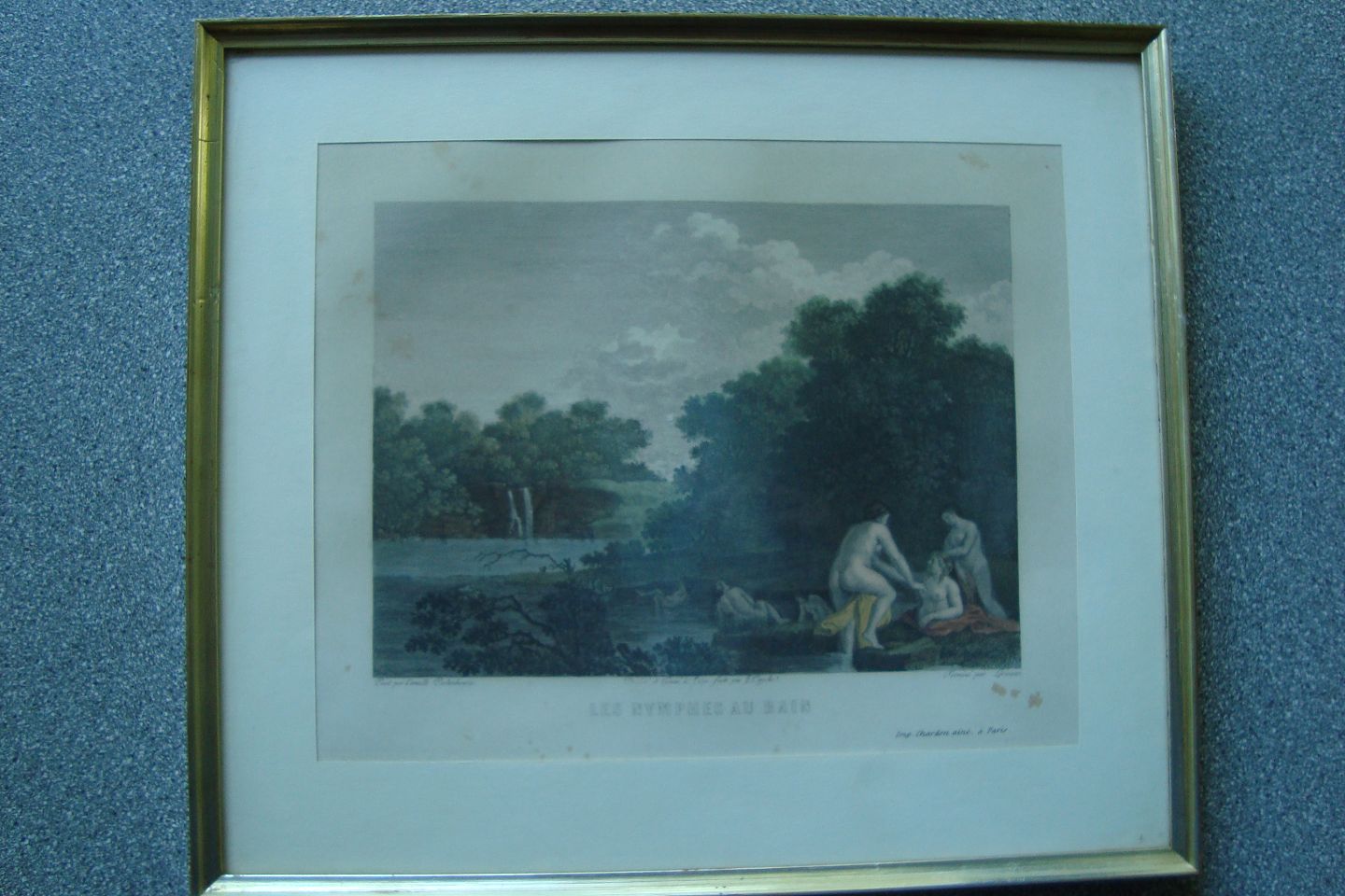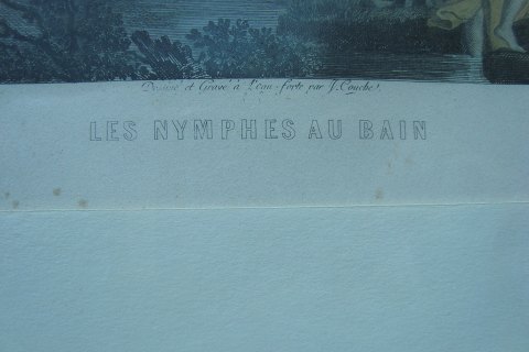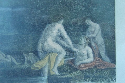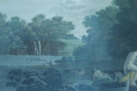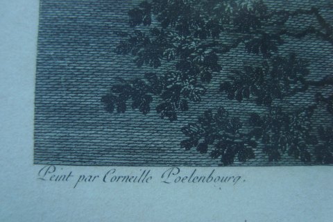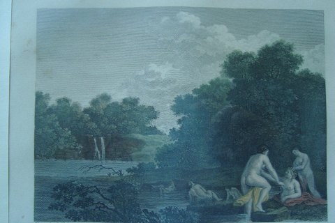 Koloreret kobberstik af Jacques Couché efter maleri af Coneille van Poelenbourg - Les Nymphes Au Bain.