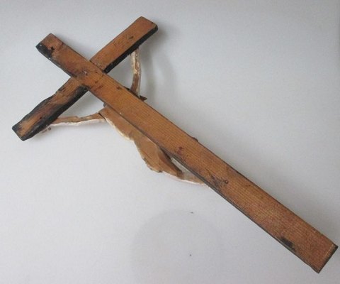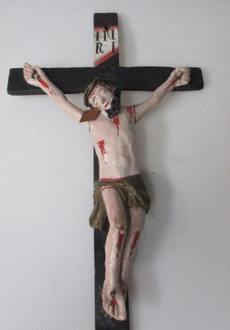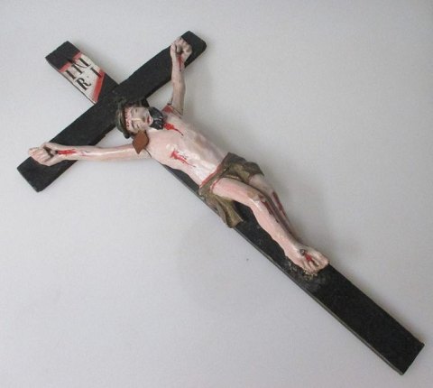 Krusifiks. Bemalet træ, 18/19 årh. H.: 43 cm. B.: 21 cm.