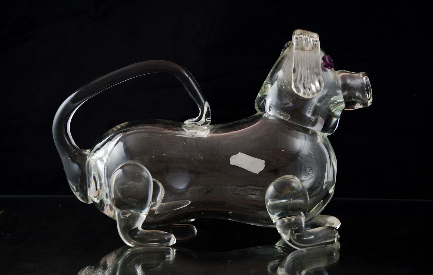 Snapsehund i glas formentligt fra Holmegaard. Intakt og i meget pæn stand.