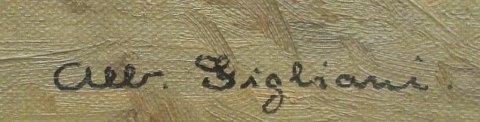 Gigliani, Alberto (19/20. årh.): En italiensk by. Olie på lærred. Signeret.: Alb. Gigliani. 45 x 65 cm.