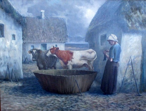 Gade, Erling (1919 - 2011) Danmark: En kvinde med to køer.