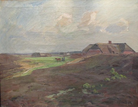 Holbak, Niels (1884 - 1954) Denmark: Farms, West Jutland. Oil on canvas. Signed: N. Holbak. 50 x 64 cm.
