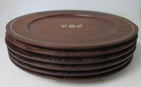 6 Service plates in Wenge wood, Erenreich, 1960'. Denmark. Inlaid with names: K. BP. Dia .: 27.2 cm. Stamped.