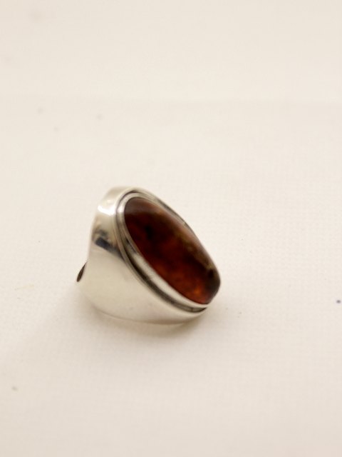 Sterling sølv ring størrelse 51-52 med rav Nr. 258799