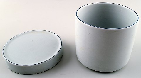 Smørskål/lågkrukke. Aluminia blå kant, fajance. Blåkant tegnet af Grethe Meyer for Aluminia og senere Royal Copenhagen.