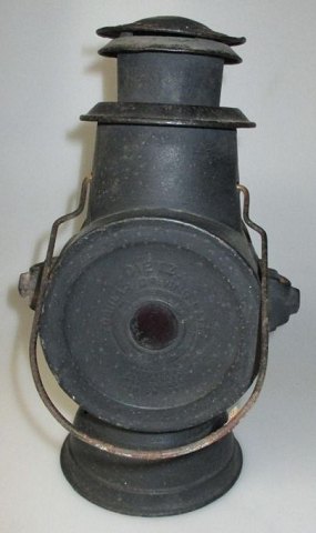 Driving Lamp, ca. 1880. Dietz. Tulubar Driving Lamp, New York, USA. For kerosene. Iron tin and copper. H .: 29 cm. With handle, H .: 36 cm.