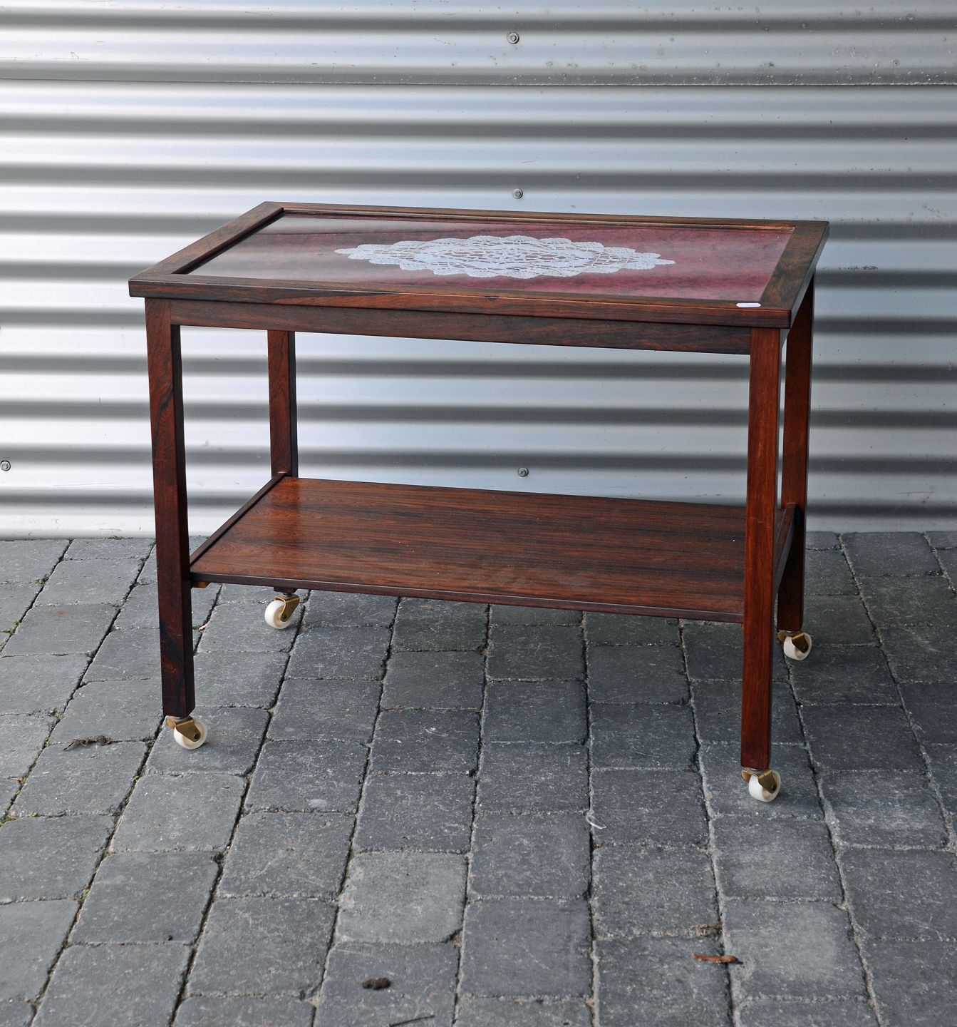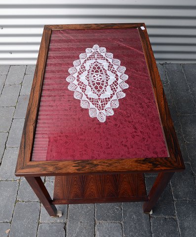 Serveringsbord i palisander med glasplade. Intakt glasplade og enkelte brugsspor.