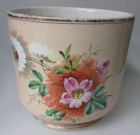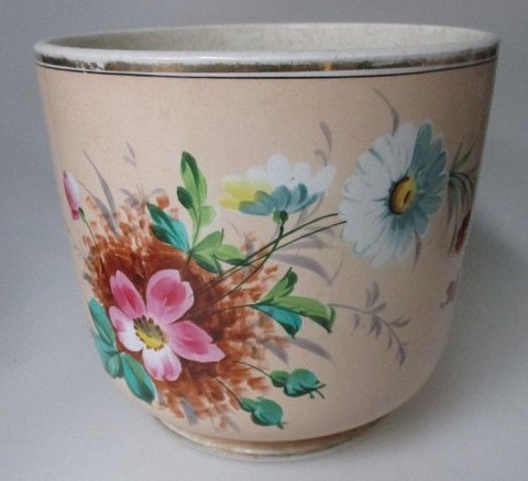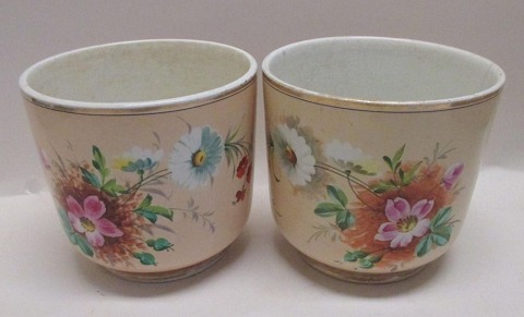 Par urtepotte skjuleren, 19. årh. Fajance. Lys skærv med håndbemalinger med blomster. Antagelig Tyskland. H.: 17 cm. Dia: 18,5 cm. Med hårrevner.