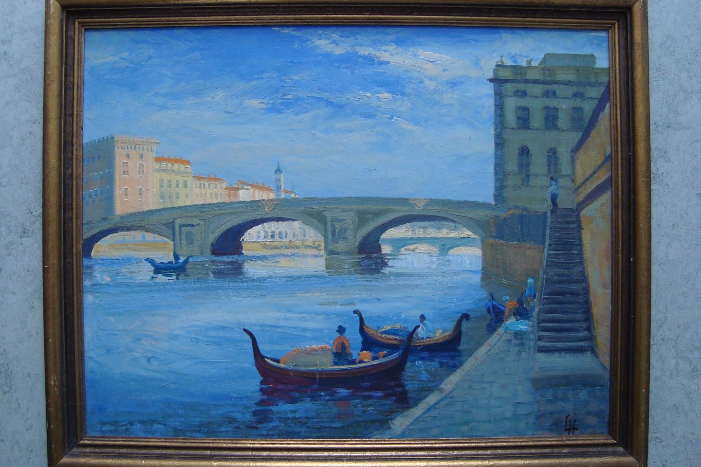 Maleri af Lilly Höegh - Parti fra Venedig med gondoler.