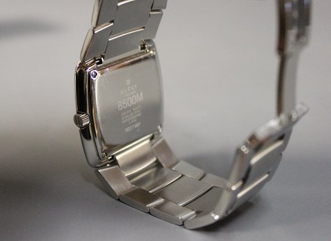 Gucci quartz unisex ur i stål og med dato i original æske. Uret er med nr.: 8500M og schweizisk urværk.